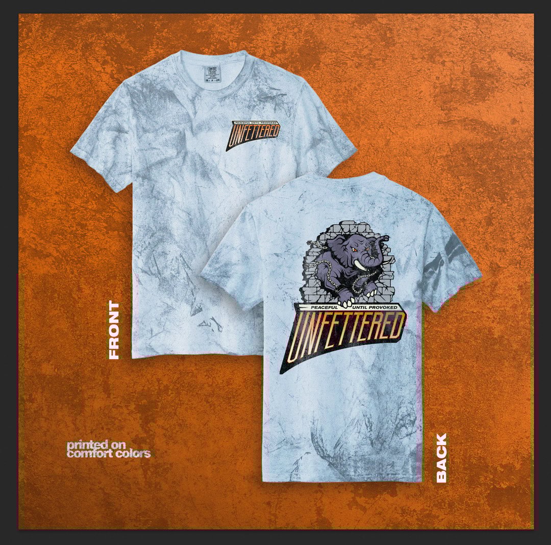 Elephants have the largest heart of any land mammal and are often seen in captivity which tie into Unfettered’s reoccuring imagery of heavy hearts and chains.